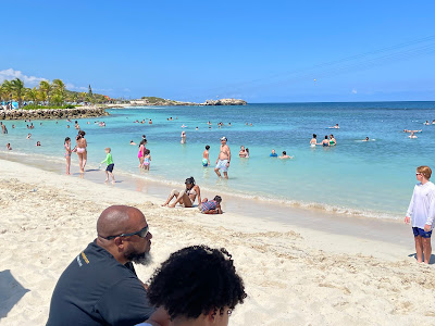 We go to breakfast at a leisurely pace and try to eat a bit more thoughtfully - with some degree of success! While we're enjoying our coffee we see two Haitian Immigration officers cruising the Windjammer dining room! Ma want to go tell them that she's from Guayana and we all have to convince her to just sit still with her mouth closed! She's not allowed to have any more Starbucks!